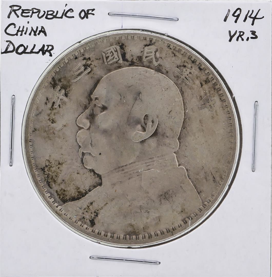 One 1914 (Year 3) Republic of China Dollar Coin.
