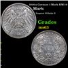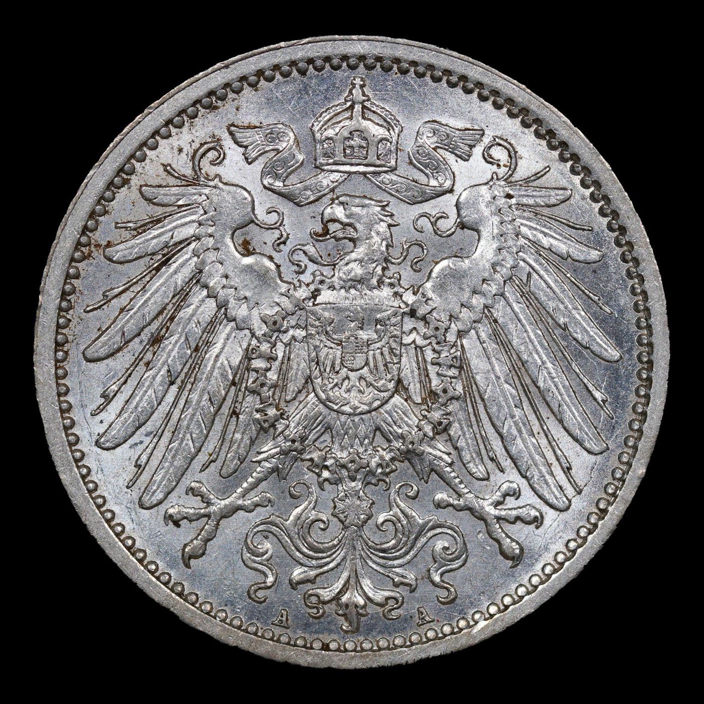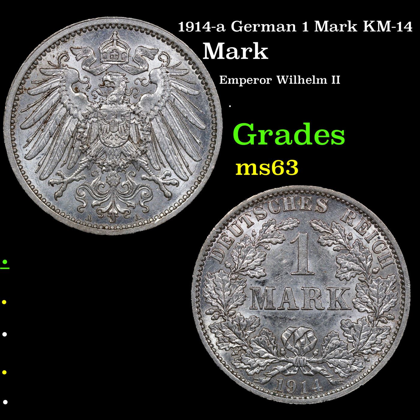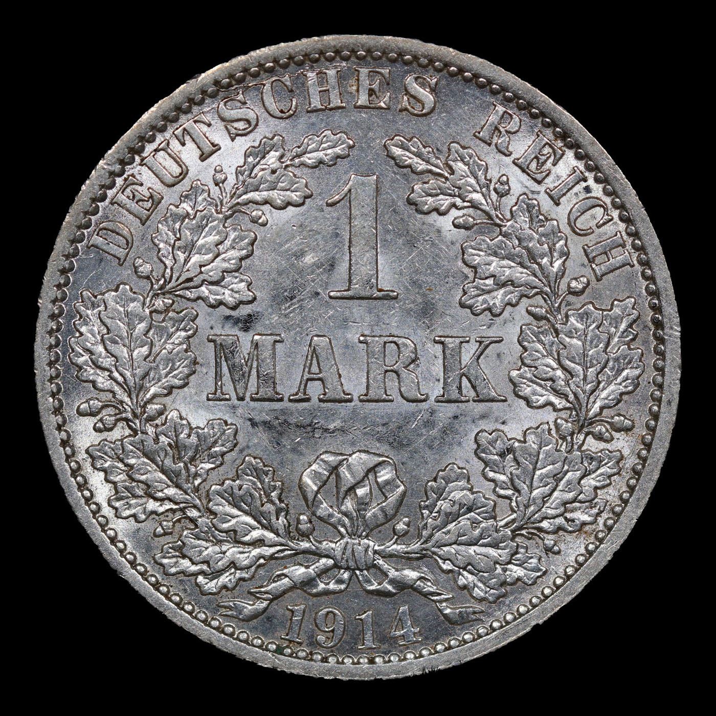 1914-a German 1 Mark KM-14 Grades Select Unc. Wilhelm II (Friedrich Wilhelm Viktor Albert; 27 January 1859 – 4 June 1941), anglicised as William II, was the last German Emperor (German: Kaiser) and King of Prussia, reigning from 15 June 1888 until his abdication on 9 November 1918. Despite strengthening the German Empire's position as a great power by building a powerful navy, his tactless public statements and erratic foreign policy greatly antagonized the international community and are considered by many to be one of the underlying causes for World War I. When the German war effort collapsed after a series of crushing defeats on the Western Front in 1918, he was forced to abdicate, thereby marking the end of the German Empire and the House of Hohenzollern's 300-year reign in Prussia and 500-year reign in Brandenburg.Wilhelm II was the son of Prince Frederick William of Prussia and Victoria, Princess Royal. His father was the son of Wilhelm I, German Emperor, and his mother was the eldest daughter of Queen Victoria of the United Kingdom and Prince Albert of Saxe-Coburg and Gotha. Wilhelm's grandfather, Wilhelm I, died in March 1888. His father became Emperor Frederick III, but died just 99 days later, and, in what is called the Year of the Three Emperors, Wilhelm II ascended the throne of the Second Reich in June 1888.In March 1890, Wilhelm II dismissed the German Empire's powerful longtime Chancellor, Otto von Bismarck, and assumed direct control over his nation's policies, embarking on a bellicose "New Course" to cement its status as a leading world power. Over the course of his reign, the German colonial empire acquired new territories in China and the Pacific (such as Kiautschou Bay, the Northern Mariana Islands, and the Caroline Islands) and became Europe's largest manufacturer. However, Wilhelm often undermined such progress by making tactless statements and threats towards other countries without first consulting his ministers. Germany became Britain's main enemy when the Kaiser launched a massive expansion of the Imperial German Navy.On the eve of World War I, Wilhelm’s foreign policy had long isolated Germany from other European powers. While Germany still had a close ally in Austria-Hungary, this was coupled with more hostile relations with Russia, France and Britain. Wilhelm’s sporadic foreign policy decisions led to the unification of Germany’s foreign opponents under the banner of the Entente Cordiale. Britain and France for the first time aligned their interests, while France’s alliance with Russia served to encircle Germany.Wilhelm's reign culminated in Germany's guarantee of military support to Austria-Hungary during the crisis of July 1914, one of the immediate causes for World War I. By this time Wilhelm had lost virtually all decision-making power. Indeed, all civilian officials were losing power to the Army's General Staff. By August 1916, a de facto military dictatorship set national policy for the rest of the conflict. Despite emerging victorious over Russia and obtaining significant territorial gains in Eastern Europe, Germany was forced to relinquish all its conquests after a decisive defeat on the Western Front in the fall of 1918. Losing the support of his country's military and many of his subjects, Wilhelm was forced to abdicate during the German Revolution of 1918–1919. The revolution converted Germany from a monarchy into an unstable democratic state known as the Weimar Republic. Wilhelm fled to exile in the Netherlands where he remained during its occupation by Nazi Germany in 1940. He died there in 1941.