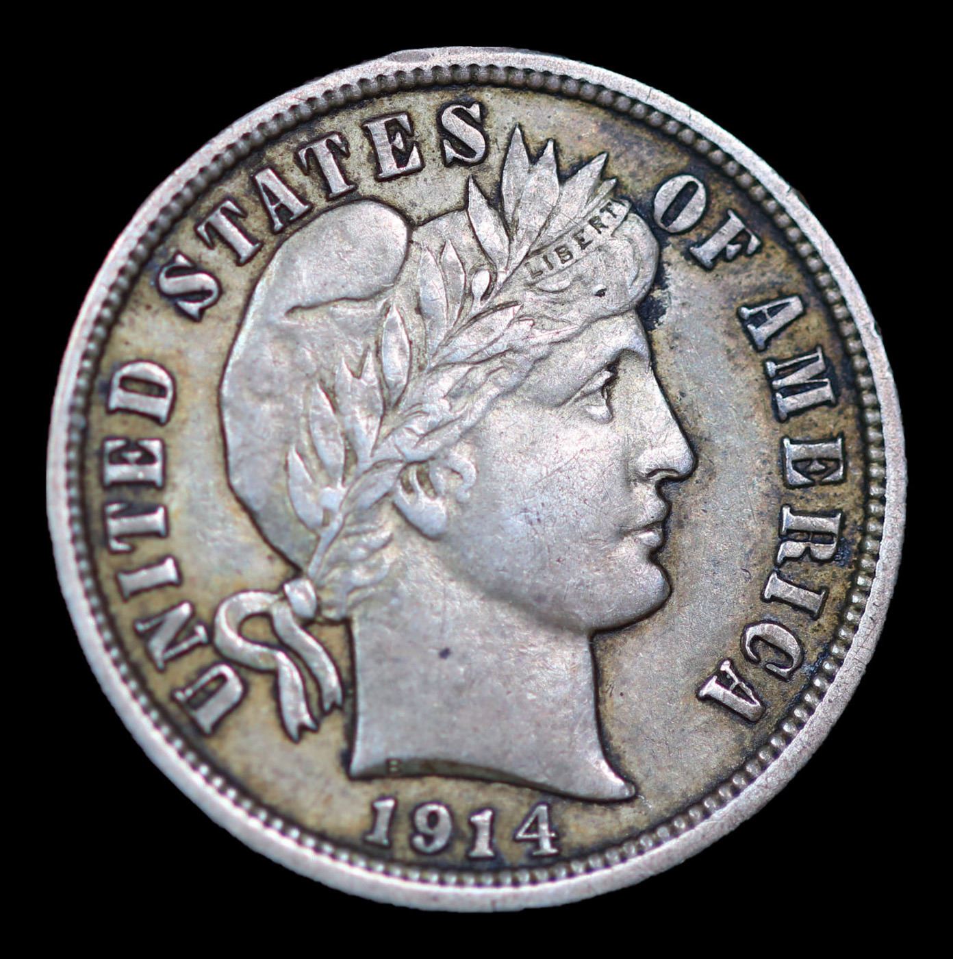 1914-d Barber Dime 10c Grades xf+.