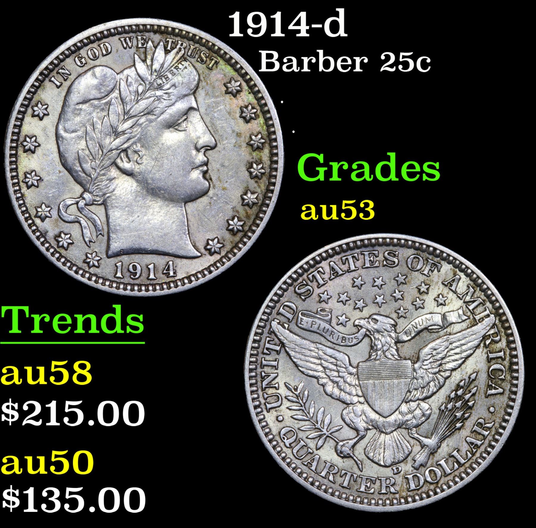 1914-d . . Barber Quarter 25c Grades Select AU.