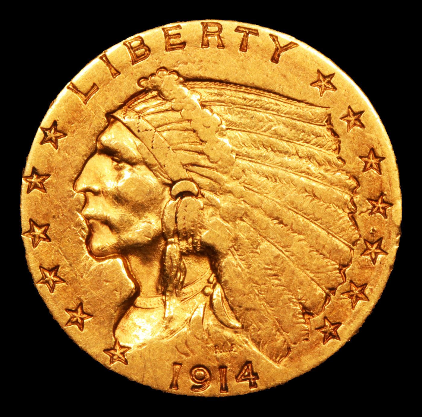 1914-d Gold Indian Quarter Eagle $2 1/2 Grades AU, Almost Unc.