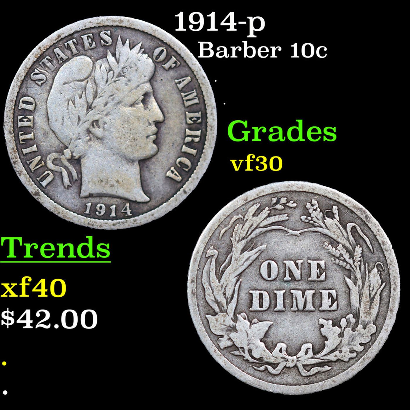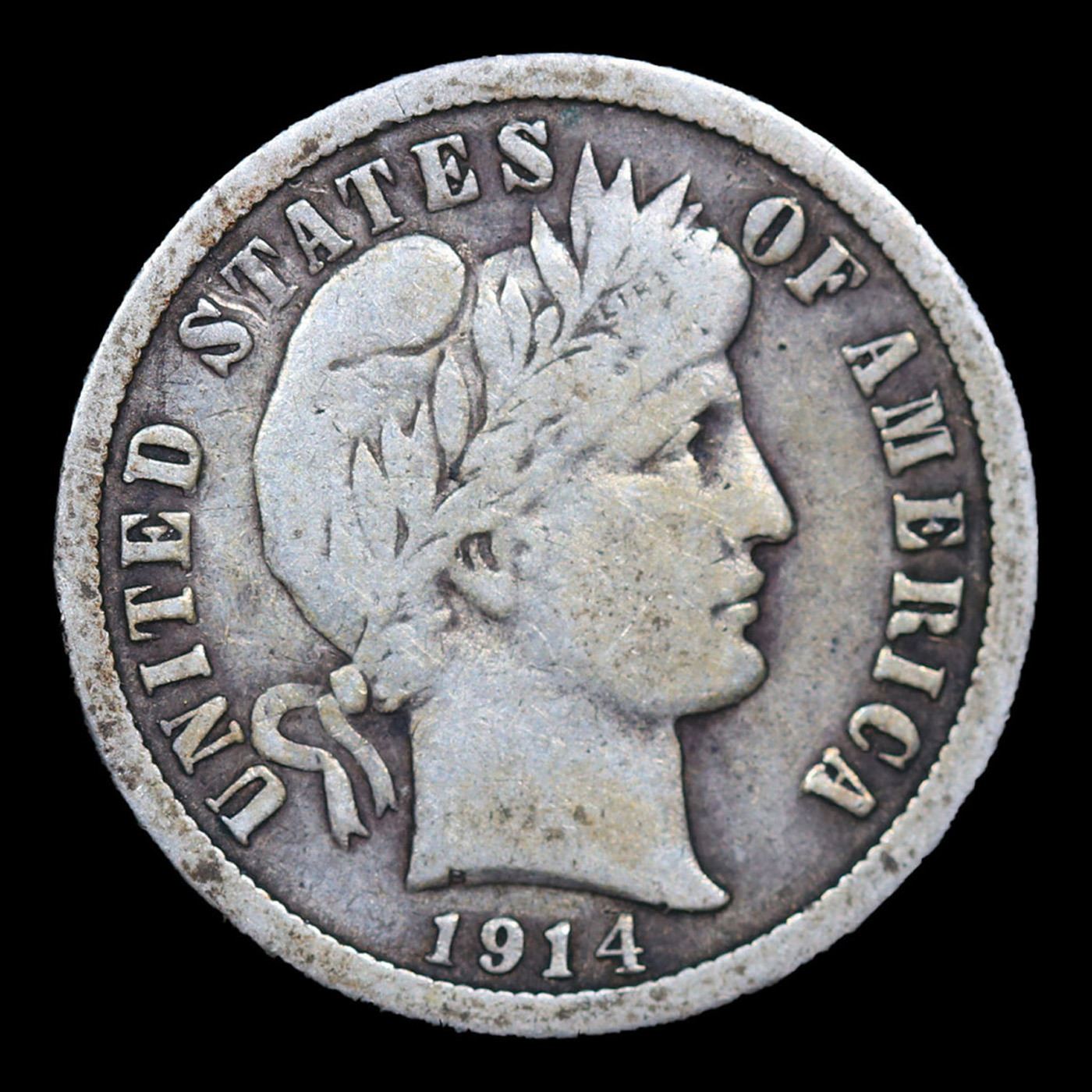 1914-p Barber Dime 10c Grades vf++.