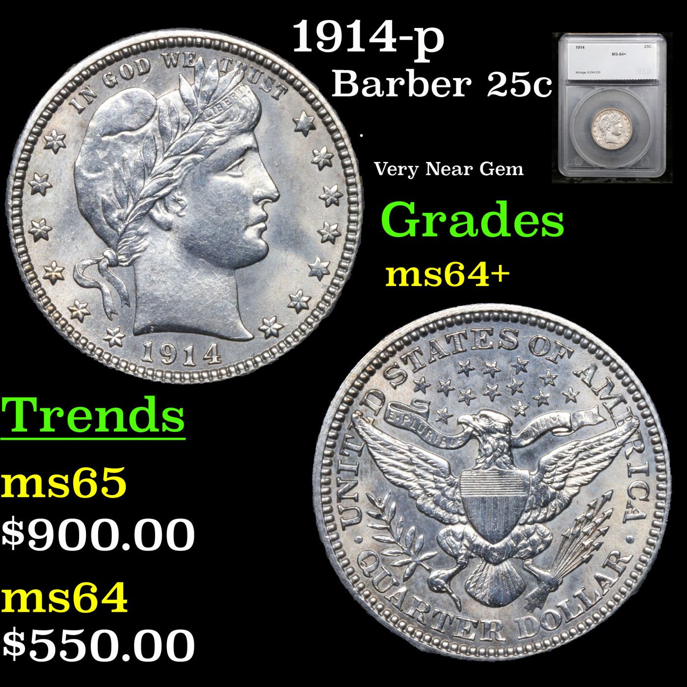 1914-p Barber Quarter 25c Graded ms64+ By SEGS.