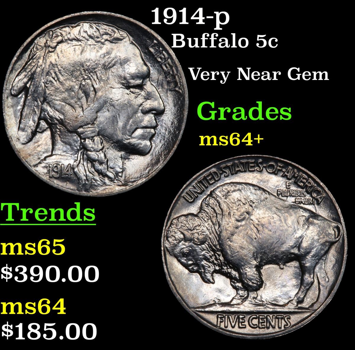 1914-p Buffalo Nickel 5c Grades Choice+ Unc.