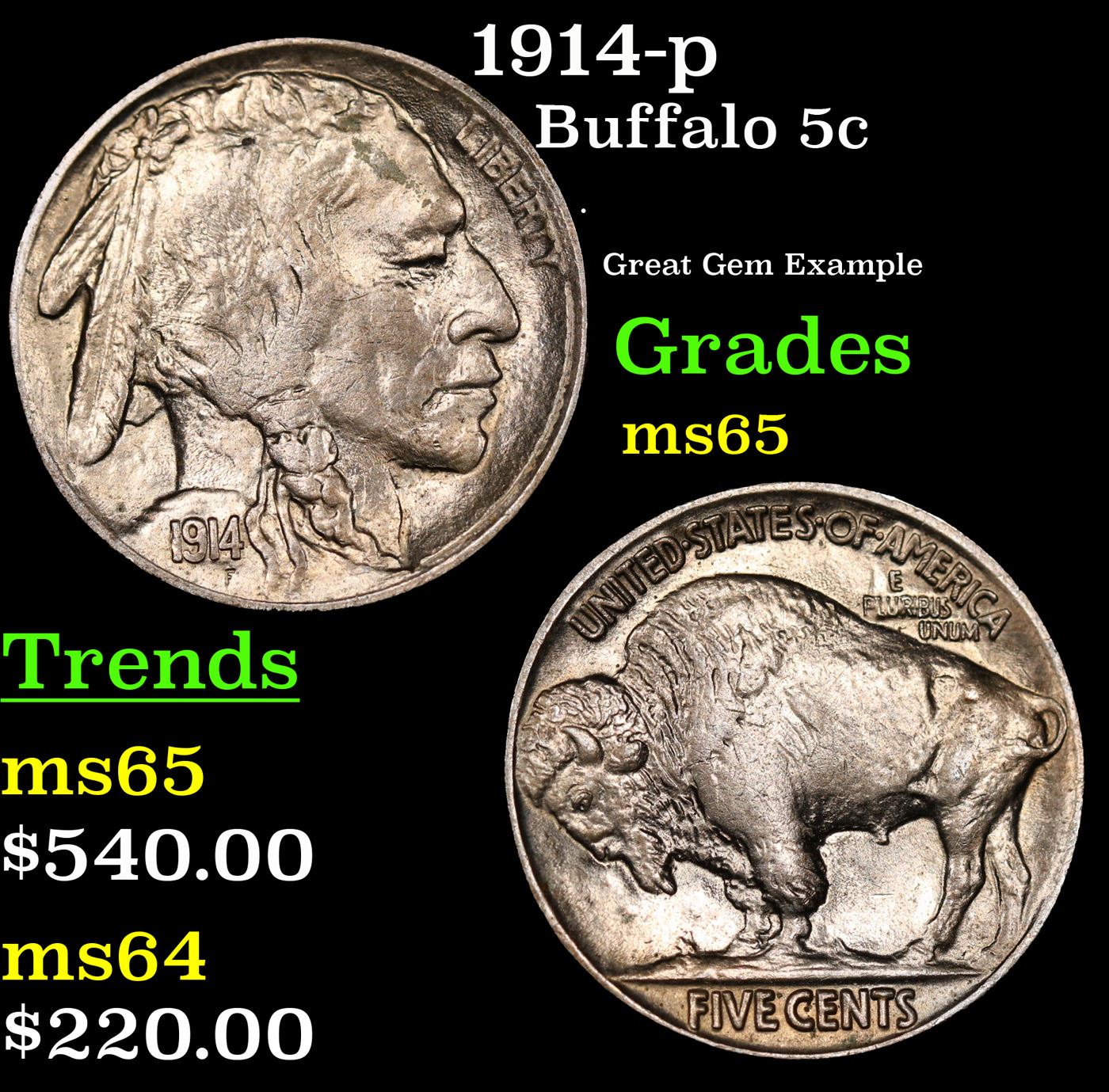 1914-p Buffalo Nickel 5c Grades GEM Unc.