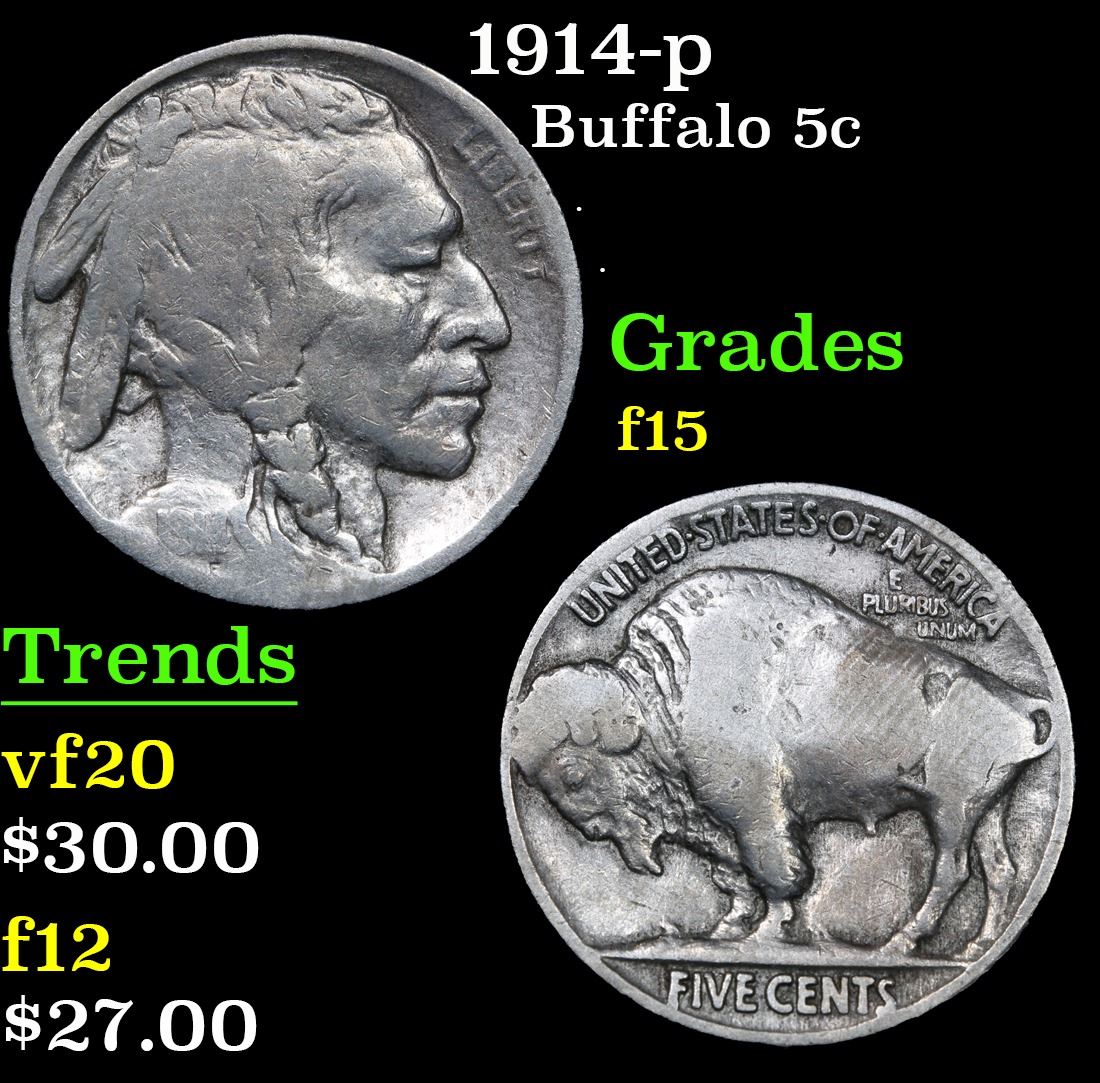 1914-p . . Buffalo Nickel 5c Grades f+.