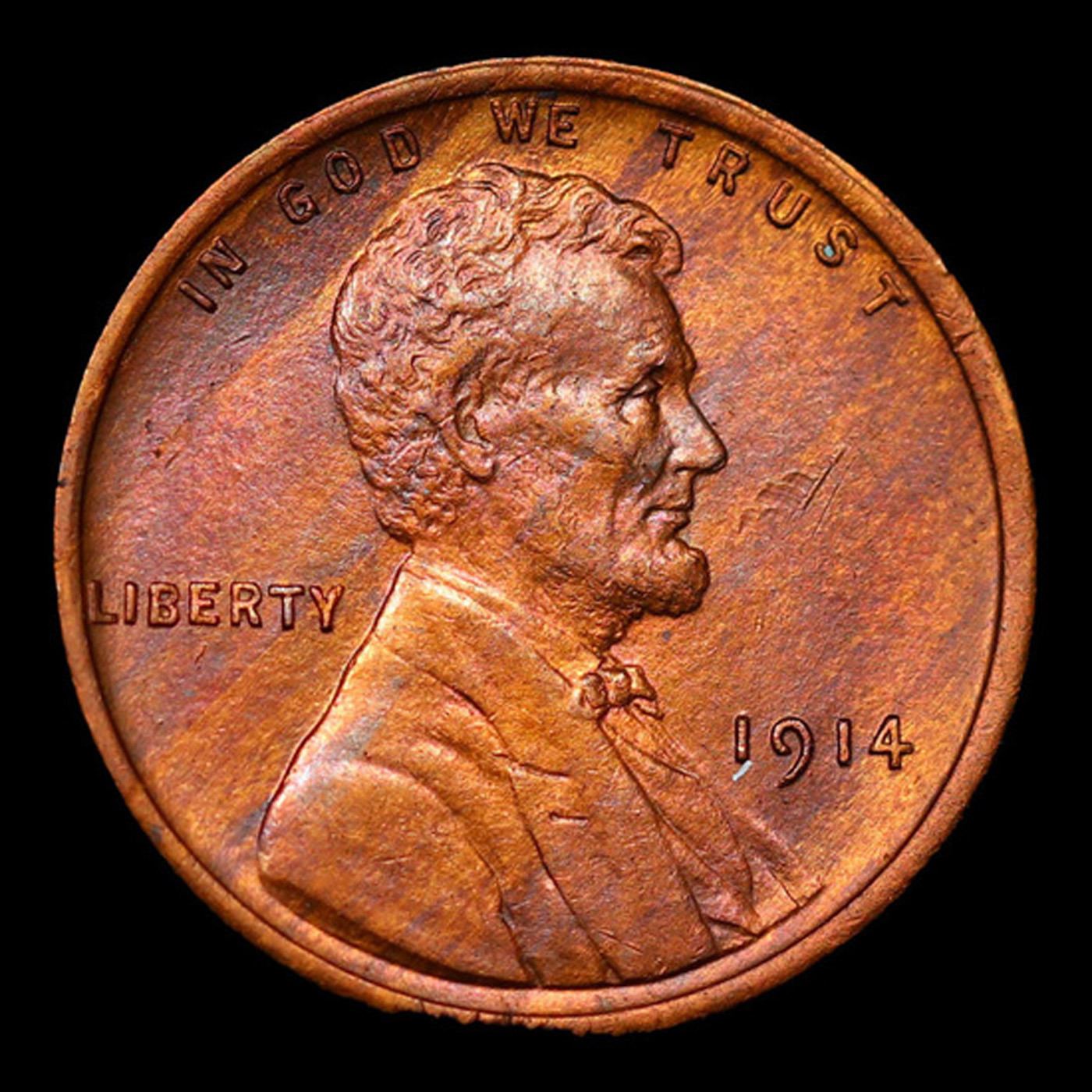1914-p Lincoln Cent 1c Grades Choice+ Unc RB.