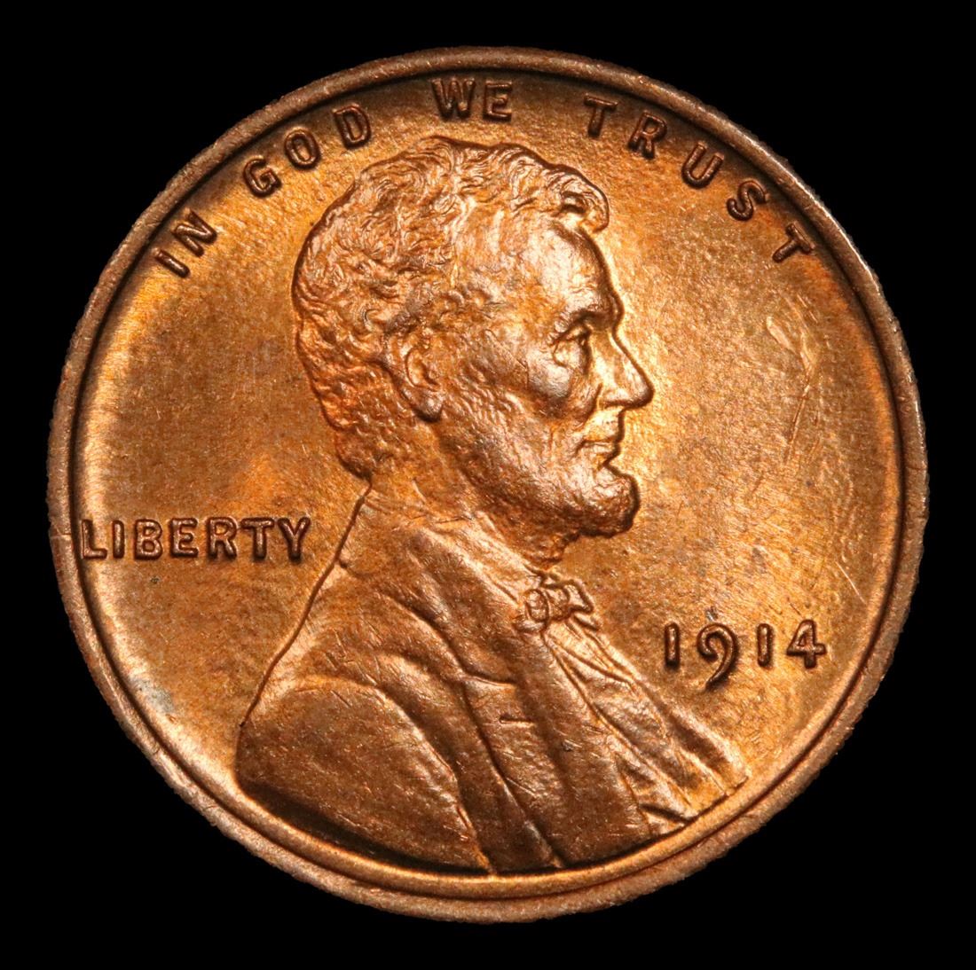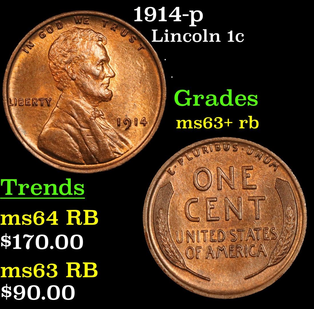 1914-p . . Lincoln Cent 1c Grades Select+ Unc RB. Incredibly scarce date. Out of an original mintage of over 75 million coins struck, PCGS estimates only 600 remain in ms65 or better.