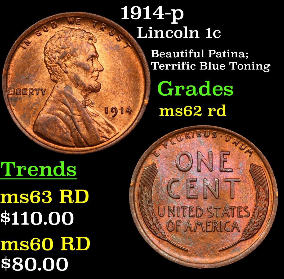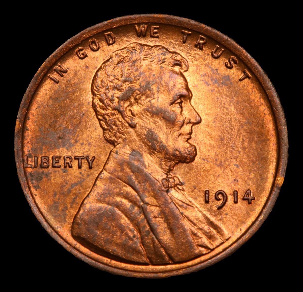 1914-p Lincoln Cent 1c Grades Select Unc RD. Incredibly scarce date. Out of an original mintage of over 75 million coins struck, PCGS estimates only 600 remain in ms65 or better.