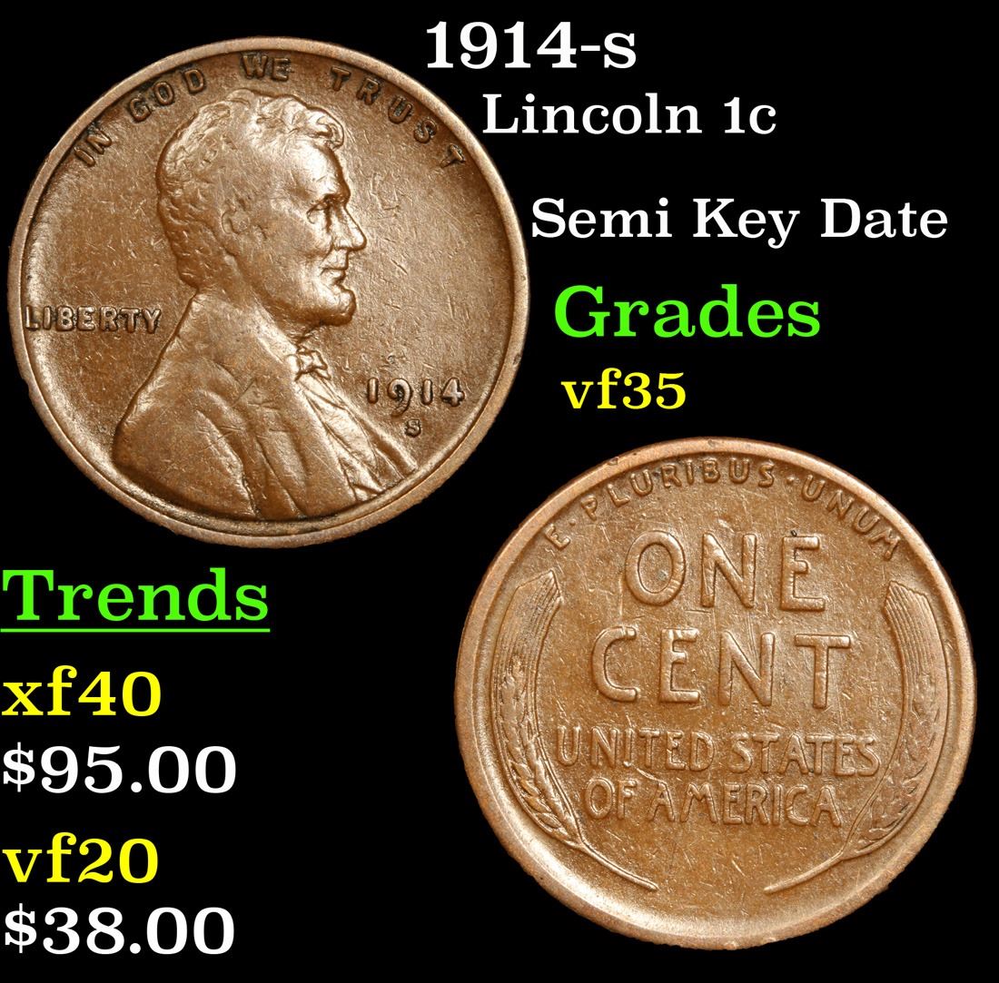 1914-s Semi Key Date . Lincoln Cent 1c Grades vf++.
