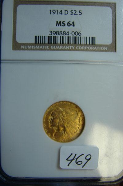 1914D $2.50 Indian Head Gold Coin NGC MS64