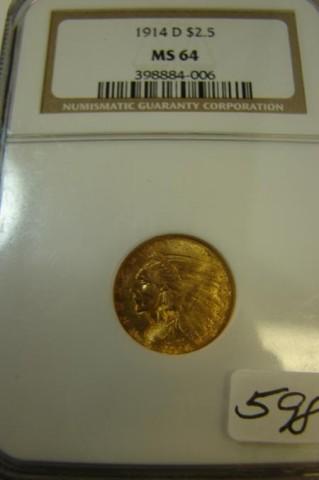 1914D $2.50 Indian Head Gold Coin NGC MS64