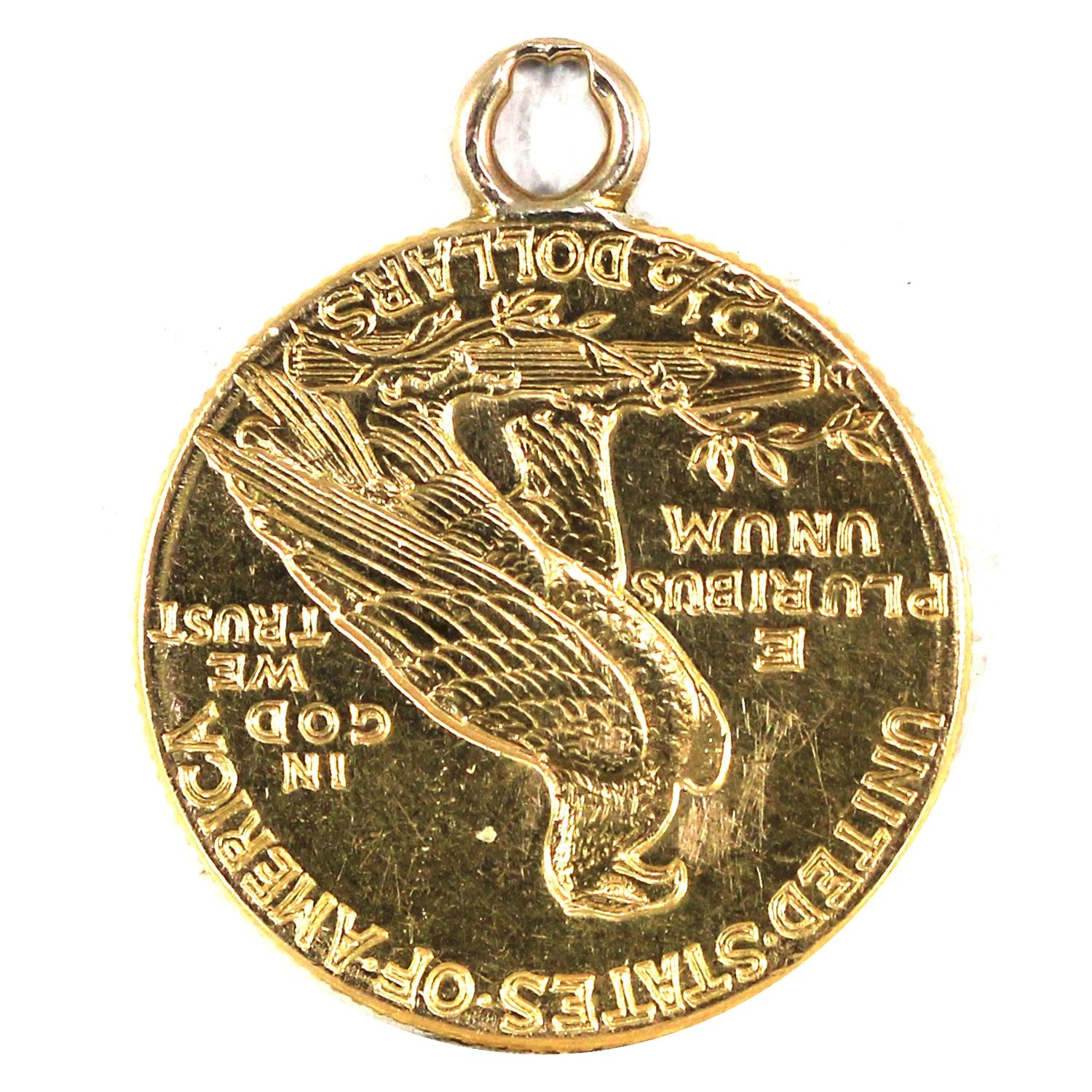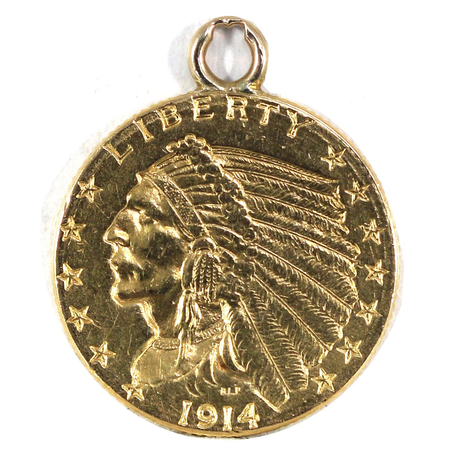 1914D USA Quarter Eagle Gold coin AU (Loop mounted on top). Contains 0.121oz fine gold.