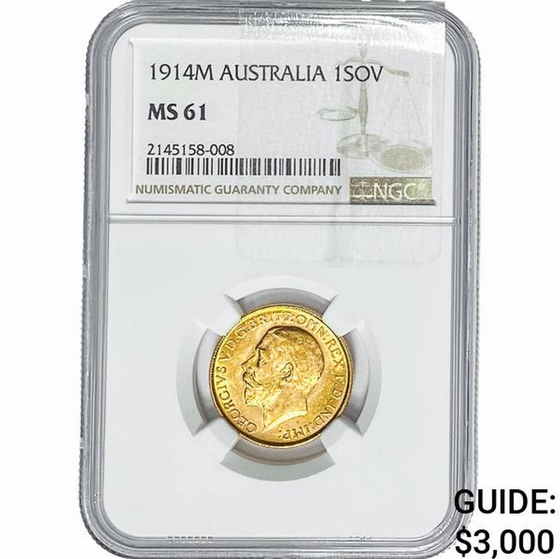 1914M Australia .2355oz Gold 1 Sovereign NGC MS61