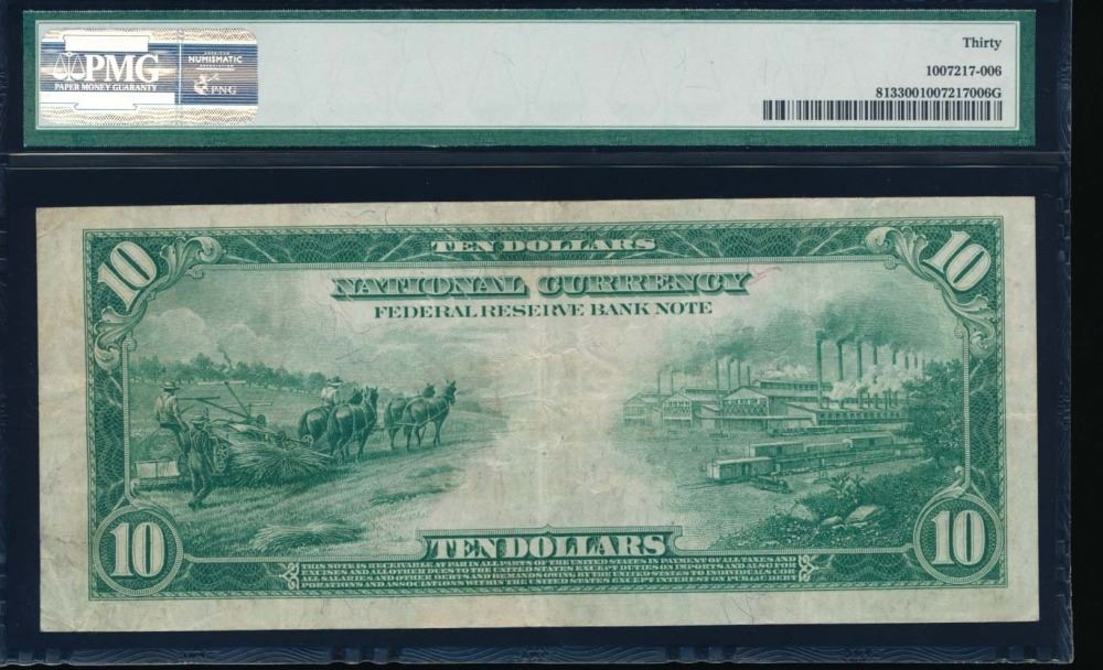 One 1915 $10 Chicago Federal Reserve Bank Note PMG 30.