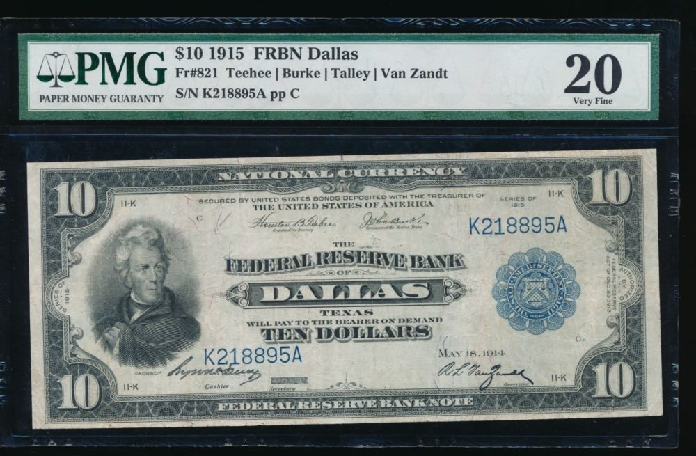 One 1915 $10 Dallas FRBN PMG 20. Very Rare only 10 known for the Dallas district.