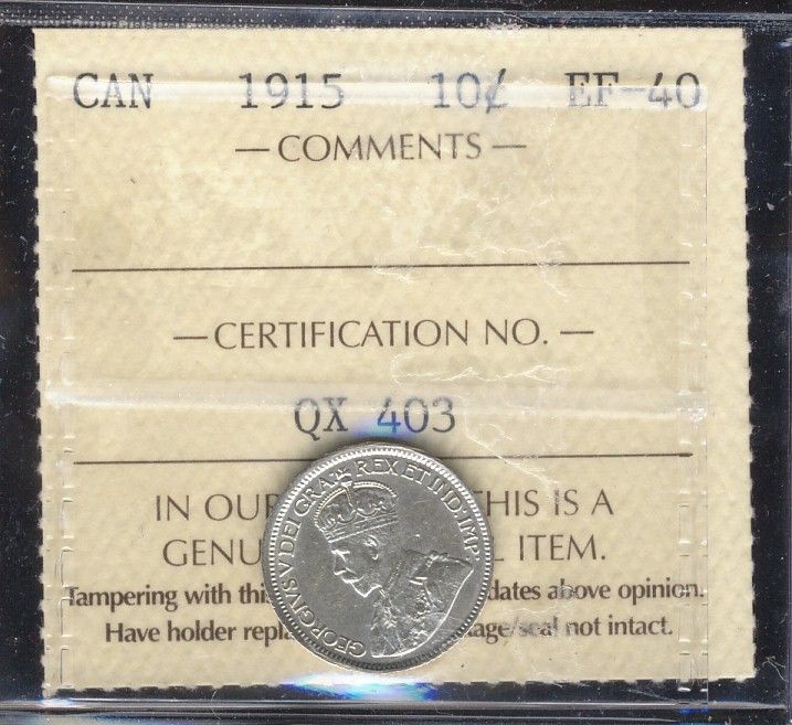 1915 10¢ ICCS EF40. Key date with light lustre.