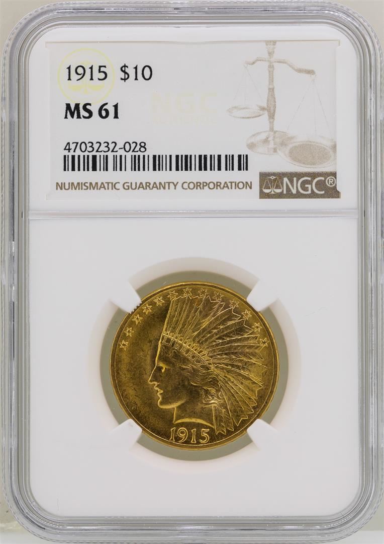 One 1915 $10 Indian Head Eagle Gold Coin NGC MS61. NGC Certified.