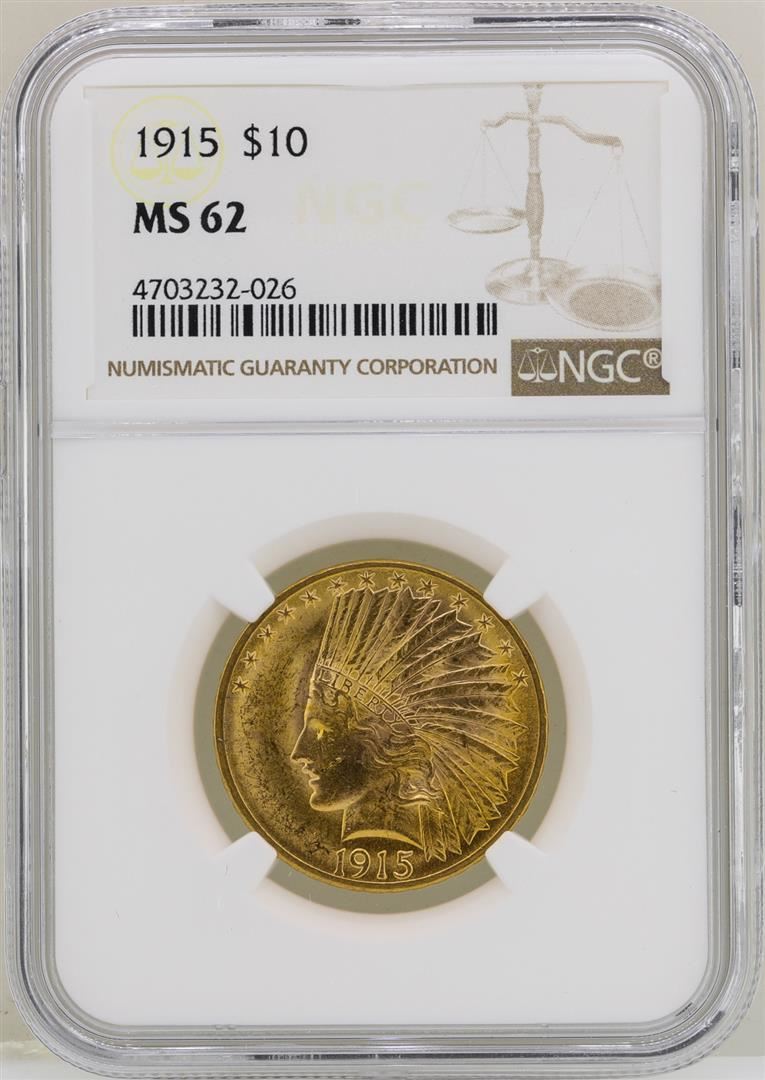 One 1915 $10 Indian Head Eagle Gold Coin NGC MS62. NGC Certified.