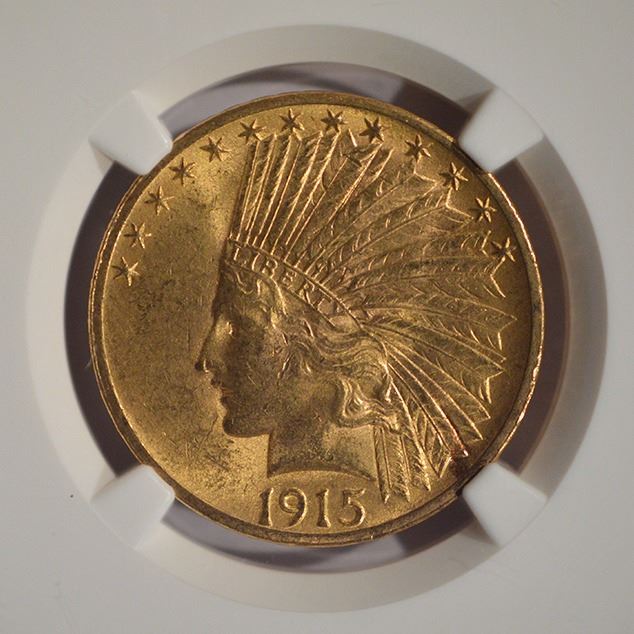 One 1915 $10 Indian Head Eagle Gold Coin NGC MS62.