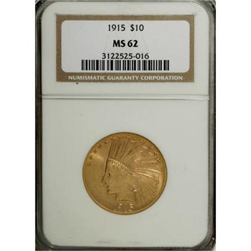 <B>1915 $10 MS62 NGC.</B></I> NGC Census: (669/681). PCGS Population (583/594). Mintage: 351,075. Numismedia Wsl. Price for NGC/PCGS coin in MS62: $1,025. (#8878)<BR><BR><B>Coin Engraver:</B> Augustus Saint-Gaudens<BR><BR><b>Shipping:</b> Coins & Currency (<a target="_blank" href="http://www.heritageauctions.com/common/shipping.php">view shipping information</a>)