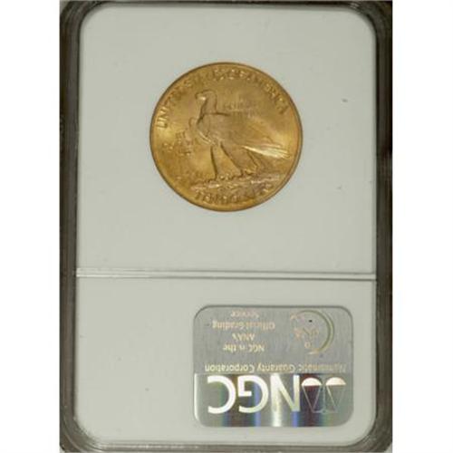<B>1915 $10 MS64 NGC.</B></I> The outer regions are vivid butter-yellow, while the centers range from gold-orange to a delicate pink blush on the portrait. Well struck with delightful luster, an attractive near-Gem. Considerably scarcer than the 1926 and 1932, the only Philadelphia issues struck after 1915.<BR><BR><B>Coin Engraver:</B> Augustus Saint-Gaudens<BR><BR><b>Shipping:</b> Coins & Currency (<a target="_blank" href="http://www.heritageauctions.com/common/shipping.php">view shipping information</a>)