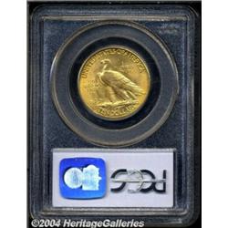 <B>1915<$10> MS64 PCGS.</B></I> A sharply detailed near-Gem with matte-like surfaces outlined in delicate orange patina. A handful of small contact marks, on each side, prevent an even higher grade assessment. <BR><BR><B>Important notice:</B> Heritage usually auctions material at the rate of 200-250 lots per hour. On some occasions eBay Live bid software or the Internet may not be able to keep up with the pace of the auction. We recommend placing a realistic absentee bid now as insurance to avoid disappointment. Occasionally the auctioneer may eliminate or reject an eBay Live bid, and the auctioneer may also reopen a lot after the close of the eBay live bidding (usually because we missed an audience bid), and may reject your bid even if it shows you as the winning bidder. By bidding via eBay Live, you agree that Heritage may award the lot to another bidder at its sole discretion under the circumstances described above or any other reasonable circumstances. Since eBay bids are not shown to us until we open the lot on the floor, we treat those bids just like floor bids. In most cases the floor responds before the eBay bid is presented to us, due to Internet lag time, so for consistency we have made it a policy that floor bids are always considered first over tie eBay live bids. Also please note that all Heritage lots purchased through eBay Live carry a 20% Buyer's Premium. Please make sure you read the Terms and Conditions before you bid. </span></font></tr></table></td></tr></table>