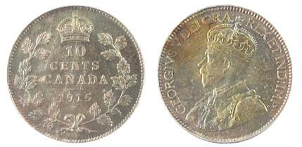 1915 10¢ PCGS MS66, medium autumn shades over full original lustre. A rare date.