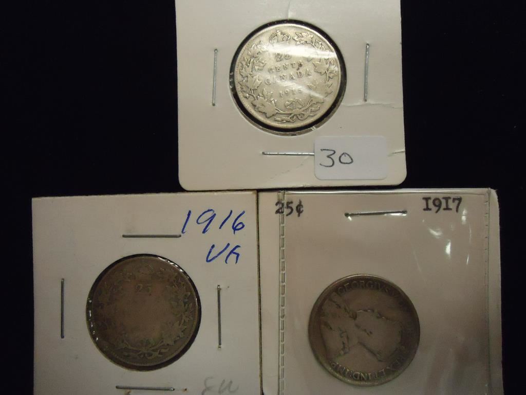 1915,16 & 17 CANADA SILVER 25 CENTS