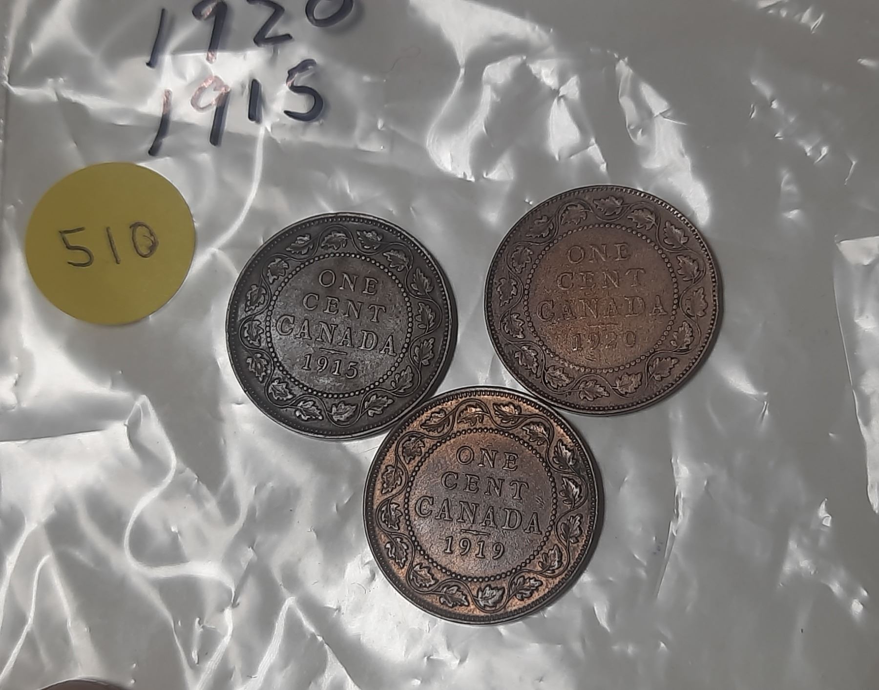 1915, 1919, 1920 Canadian Large One Cent.