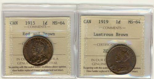 1915 & 1919 Both ICCS MS64 RB and Brown