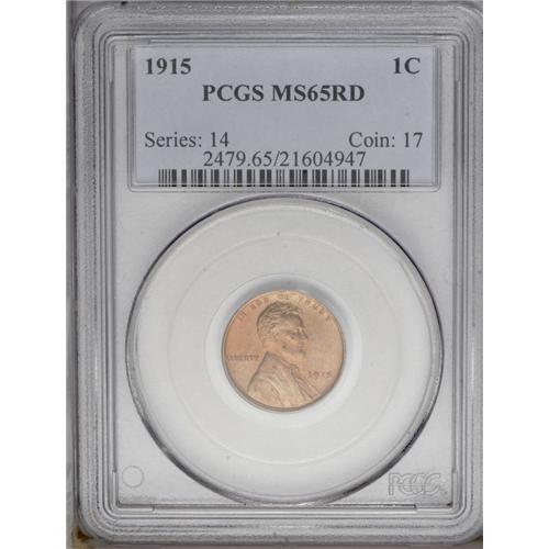 1915 1C MS65 Red PCGS. This is a lovely Gem with brill 1915[1C] MS65 Red PCGS.