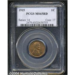 <B>1915<1C> MS65 Red PCGS.</B></I> This brilliant red Gem has exceptional eye appeal. The luster is very slightly subdued with traces of olive toning. Both surfaces are completely free of the usual spots of flyspecks that typically plague these early Lincoln cents. The design features are boldly defined. <BR><BR><B>Important notice:</B> Heritage usually auctions material at the rate of 200-250 lots per hour. On some occasions eBay Live bid software or the Internet may not be able to keep up with the pace of the auction. We recommend placing a realistic absentee bid now as insurance to avoid disappointment. Occasionally the auctioneer may eliminate or reject an eBay Live bid, and the auctioneer may also reopen a lot after the close of the eBay live bidding (usually because we missed an audience bid), and may reject your bid even if it shows you as the winning bidder. By bidding via eBay Live, you agree that Heritage may award the lot to another bidder at its sole discretion under the circumstances described above or any other reasonable circumstances. Since eBay bids are not shown to us until we open the lot on the floor, we treat those bids just like floor bids. In most cases the floor responds before the eBay bid is presented to us, due to Internet lag time, so for consistency we have made it a policy that floor bids are always considered first over tie eBay live bids. Also please note that all Heritage lots purchased through eBay Live carry a 20% Buyer's Premium. Please make sure you read the Terms and Conditions before you bid. </span></font></tr></table></td></tr></table>