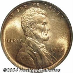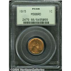 <B>1915<1C> MS66 Red PCGS.</B></I> Very sharply defined with bold and bright orange luster. The surfaces are frosty and free of all but the tiniest marks. A few very minor dark toning spots are visible on each side. If you have been searching for this issue, the present sale offers a choice of several Gem quality 1915 Lincoln cents. Population: 72 in 66, 6 finer (7/04). <BR><BR><B>Important notice:</B> Heritage usually auctions material at the rate of 200-250 lots per hour. On some occasions eBay Live bid software or the Internet may not be able to keep up with the pace of the auction. We recommend placing a realistic absentee bid now as insurance to avoid disappointment. Occasionally the auctioneer may eliminate or reject an eBay Live bid, and the auctioneer may also reopen a lot after the close of the eBay live bidding (usually because we missed an audience bid), and may reject your bid even if it shows you as the winning bidder. By bidding via eBay Live, you agree that Heritage may award the lot to another bidder at its sole discretion under the circumstances described above or any other reasonable circumstances. Since eBay bids are not shown to us until we open the lot on the floor, we treat those bids just like floor bids. In most cases the floor responds before the eBay bid is presented to us, due to Internet lag time, so for consistency we have made it a policy that floor bids are always considered first over tie eBay live bids. Also please note that all Heritage lots purchased through eBay Live carry a 20% Buyer's Premium. Please make sure you read the Terms and Conditions before you bid. </span></font></tr></table></td></tr></table>
