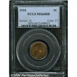 <B>1915<1C> MS66 Red PCGS.</B></I> The glistening red-orange and deep copper-green surfaces gleam with premium luster. No carbon is seen on either side. Typically well struck, and clearly an impeccably preserved '15-P, one of the most difficult Philadelphia issues to acquire in this outstanding grade. <BR><BR><B>Important notice:</B> Heritage usually auctions material at the rate of 200-250 lots per hour. On some occasions eBay Live bid software or the Internet may not be able to keep up with the pace of the auction. We recommend placing a realistic absentee bid now as insurance to avoid disappointment. Occasionally the auctioneer may eliminate or reject an eBay Live bid, and the auctioneer may also reopen a lot after the close of the eBay live bidding (usually because we missed an audience bid), and may reject your bid even if it shows you as the winning bidder. By bidding via eBay Live, you agree that Heritage may award the lot to another bidder at its sole discretion under the circumstances described above or any other reasonable circumstances. Since eBay bids are not shown to us until we open the lot on the floor, we treat those bids just like floor bids. In most cases the floor responds before the eBay bid is presented to us, due to Internet lag time, so for consistency we have made it a policy that floor bids are always considered first over tie eBay live bids. Also please note that all Heritage lots purchased through eBay Live carry a 20% Buyer's Premium. Please make sure you read the Terms and Conditions before you bid.