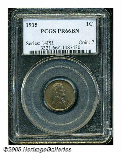 <B>1915<1C> PR66 Brown PCGS.</B></I> Dappled apple-green and golden-brown colors endow this fully struck and immaculate premium Gem. A high grade original specimen, very scarce in such exemplary preservation.