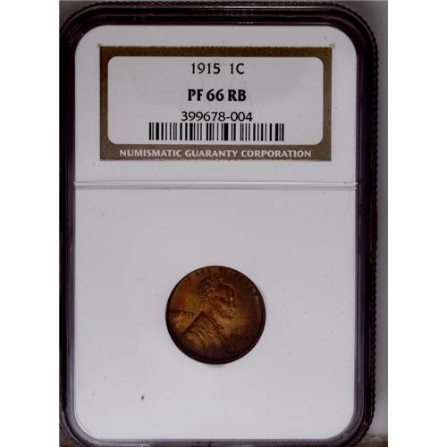 <B>1915<1C> PR66 Red and Brown NGC.</B></I> This is a deeply, gloriously toned example of this early Lincoln cent issue. Rich satin luster illuminates variegated mint-green, crimson, sea-green and violet coloration. Well struck and carefully preserved, without a distracting mark to be seen on either obverse or reverse. Only 1,150 pieces were struck, which is the second-lowest proof mintage for the series. Census: 20 in 66 Red and Brown, 1 finer (3/06). <BR><BR><B>Important notice:</B> Heritage usually auctions material at the rate of 200-250 lots per hour. On some occasions eBay Live bid software or the Internet may not be able to keep up with the pace of the auction. We recommend placing a realistic absentee bid now as insurance to avoid disappointment. Occasionally the auctioneer may eliminate or reject an eBay Live bid, and the auctioneer may also reopen a lot after the close of the eBay live bidding (usually because we missed an audience bid), and may reject your bid even if it shows you as the winning bidder. By bidding via eBay Live, you agree that Heritage may award the lot to another bidder at its sole discretion under the circumstances described above or any other reasonable circumstances. Since eBay bids are not shown to us until we open the lot on the floor, we treat those bids just like floor bids. In most cases the floor responds before the eBay bid is presented to us, due to Internet lag time, so for consistency we have made it a policy that floor bids are always considered first over tie eBay live bids. Also please note that all Heritage lots purchased through eBay Live carry a 20% Buyer's Premium. Please make sure you read the Terms and Conditions before you bid. This lot is being auctioned in conjunction with a live floor auction by Heritage Galleries & Auctioneers. All final auction and invoice information will be supplied by Heritage Galleries & Auctioneers, and all other information should be considered preliminary. Lot:701 <BR><BR><B>Winning Notification and Billing:</B> After the FINAL session in this auction is complete, Heritage will send e-mail and snail mail invoices. This process normally takes several days. All final auction and invoice information will be supplied by Heritage Galleries & Auctioneers, and all other information should be considered preliminary. <BR><BR>This auction will be conducted on a live auction floor and over the Internet through eBay Live. If you choose to place an absentee bid, please take a moment to <font color='#0000ff'><u><a href='http://pages.ebay.com/liveauctions/help/before/laabsentee.html'>learn how eBay Live absentee bidding works</a></u></font><font color='#000000'>
