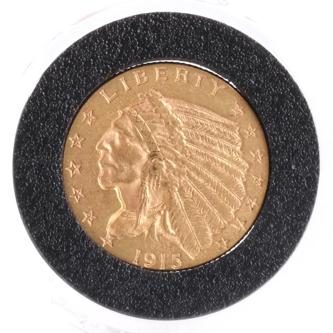 1915 $2 1/2 Gold Indian Head, A.U.