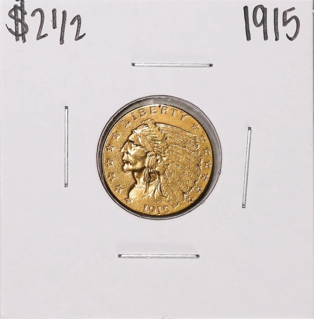 One 1915 $2 1/2 Indian Head Quarter Eagle Coin.