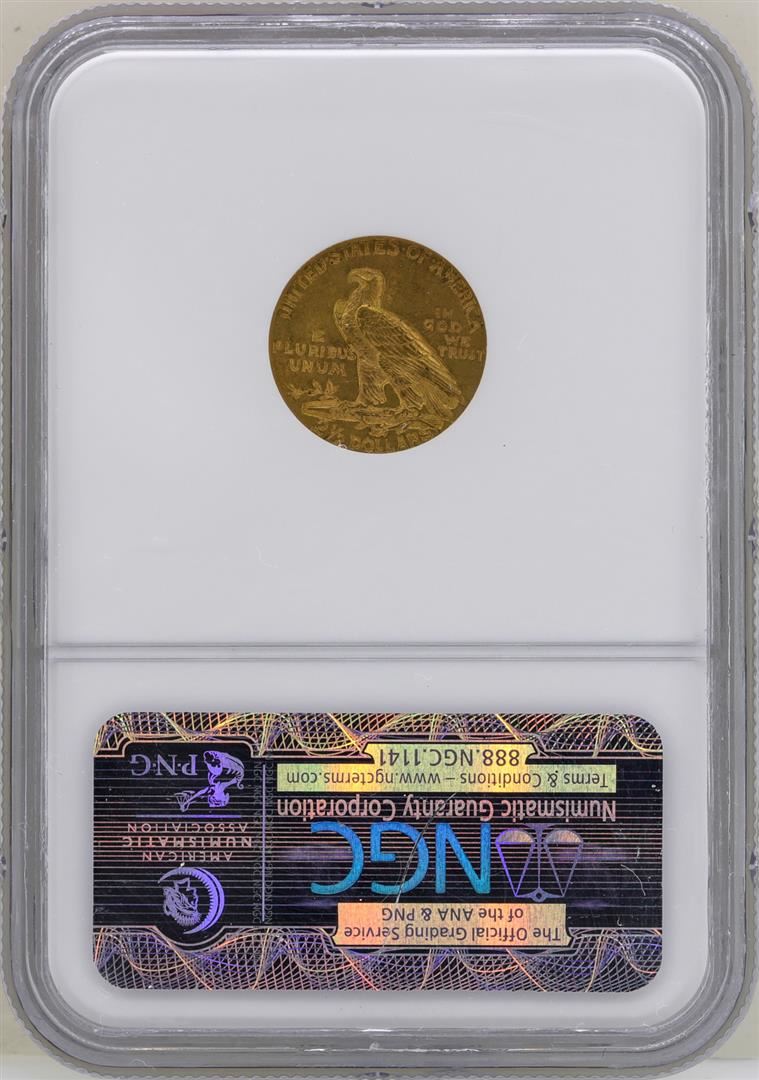 One 1915 $2 1/2 Indian Head Quarter Eagle Gold Coin NGC MS62. NGC Certified.