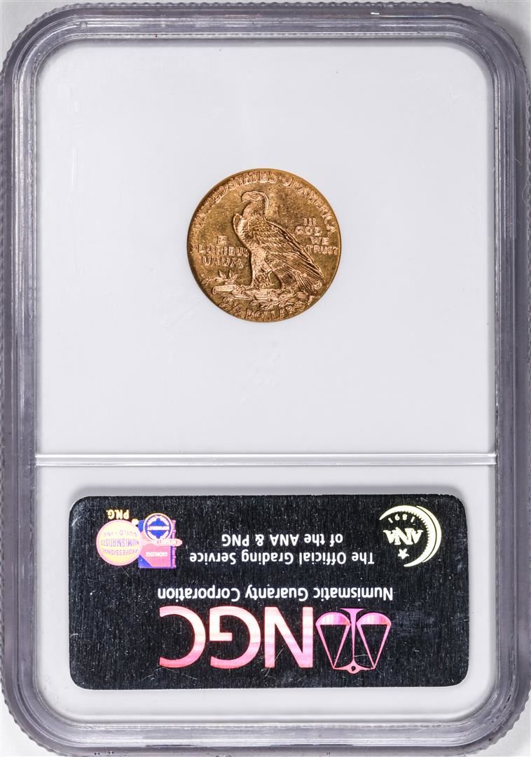 One 1915 $2 1/2 Indian Head Quarter Eagle Gold Coin NGC MS62. NGC Certified.