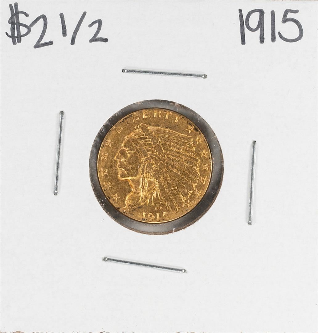 One 1915 $2 1/2 Indian Head Quarter Eagle Gold Coin.