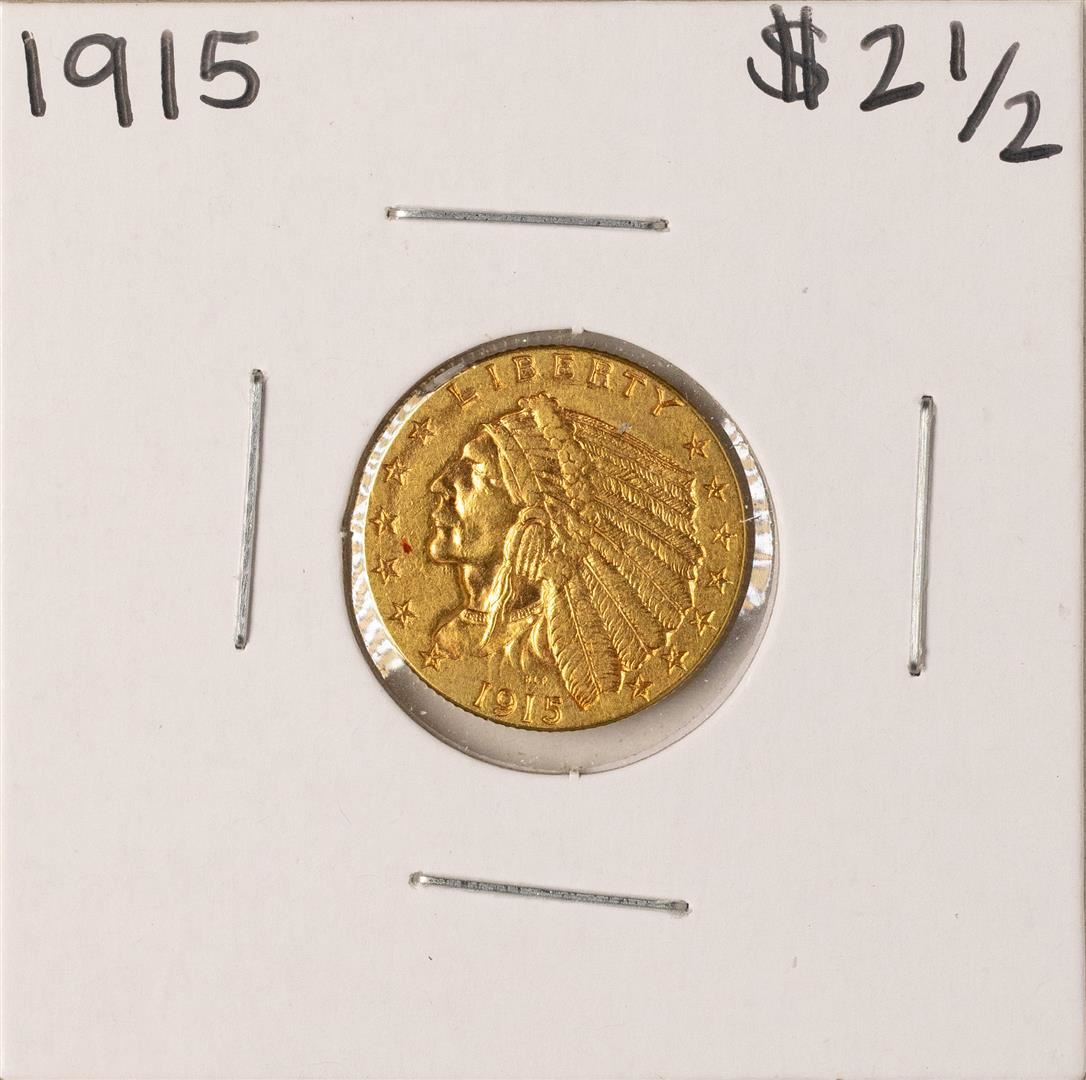 One 1915 $2 1/2 Indian Head Quarter Eagle Gold Coin.