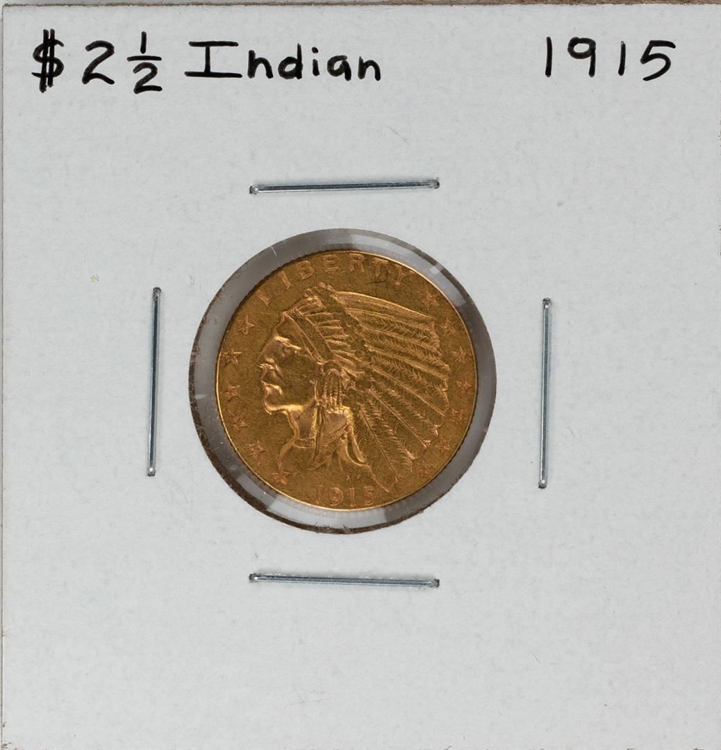 One 1915 $2 1/2 Indian Head Quarter Eagle Gold Coin.