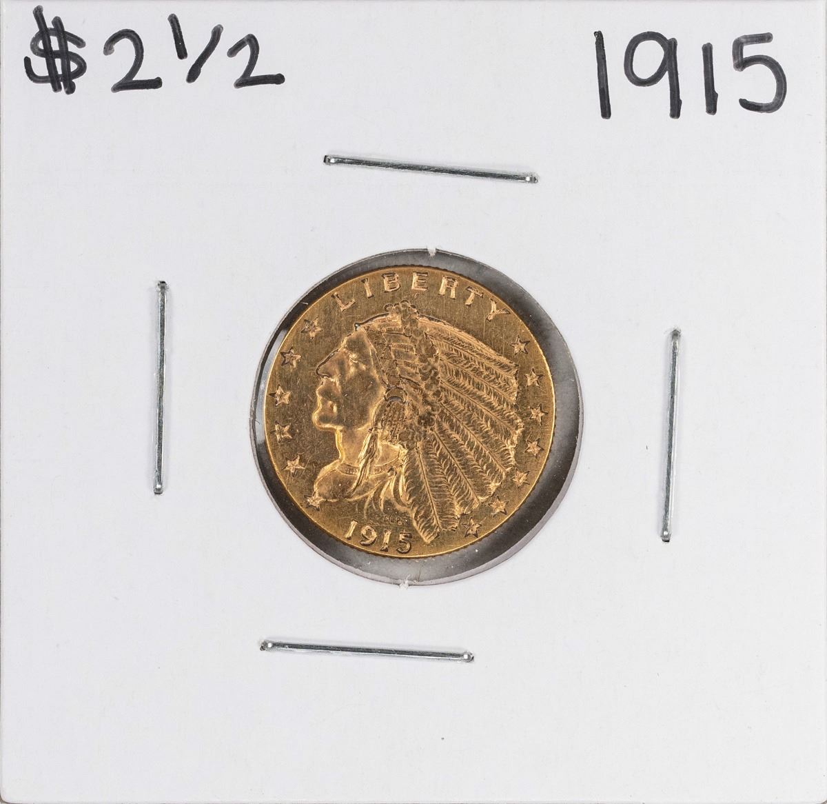 One 1915 $2 1/2 Indian Head Quarter Eagle Gold Coin.
