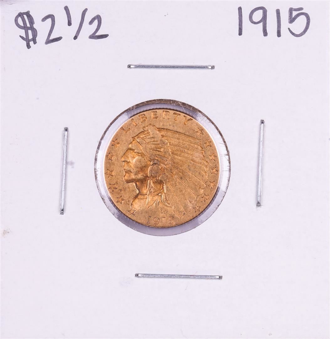 One 1915 $2 1/2 Indian Head Quarter Eagle Gold Coin.