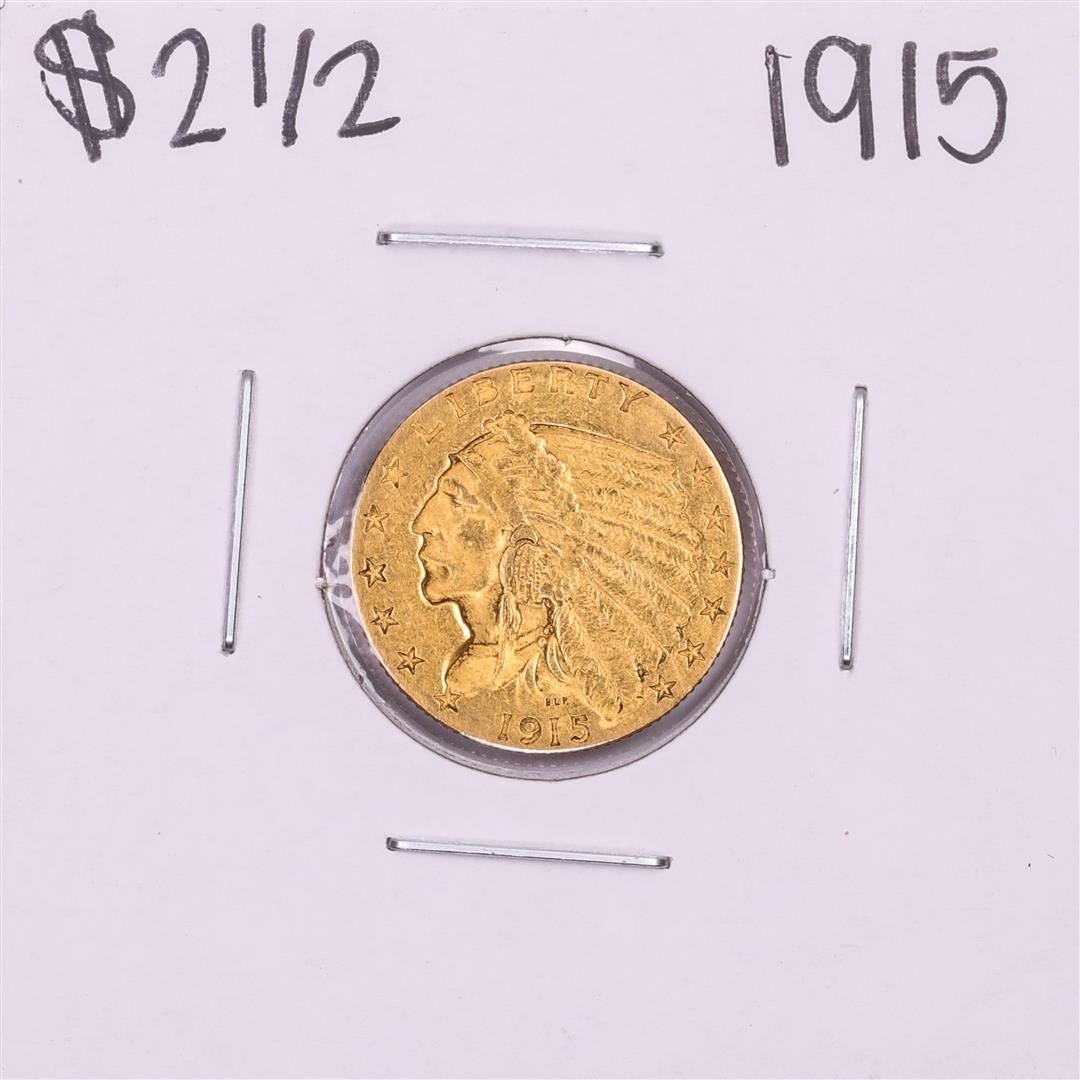 One 1915 $2 1/2 Indian Head Quarter Eagle Gold Coin.