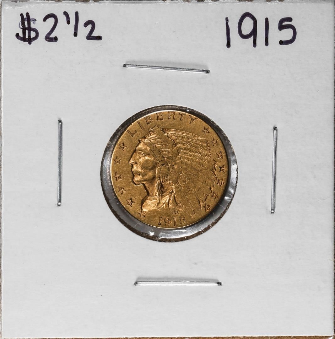 One 1915 $2 1/2 Indian Head Quarter Eagle Gold Coin.