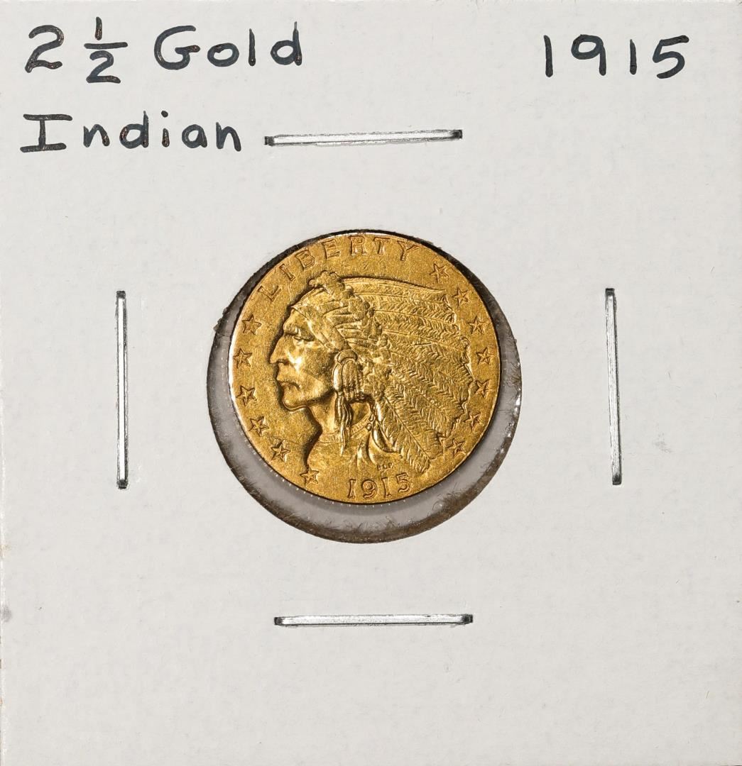 One 1915 $2 1/2 Indian Head Quarter Eagle Gold Coin.