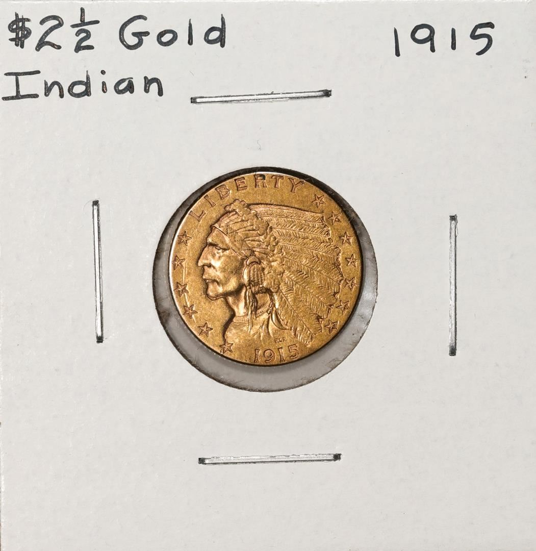 One 1915 $2 1/2 Indian Head Quarter Eagle Gold Coin.